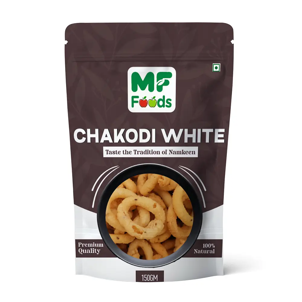 MF Foods Chakodi White is a mild and crispy South Indian snack made from rice flour and gram flour. Unlike the spicy Chakodi, this version skips the chilli for a light, golden, and subtly seasoned flavor that’s loved by all ages.