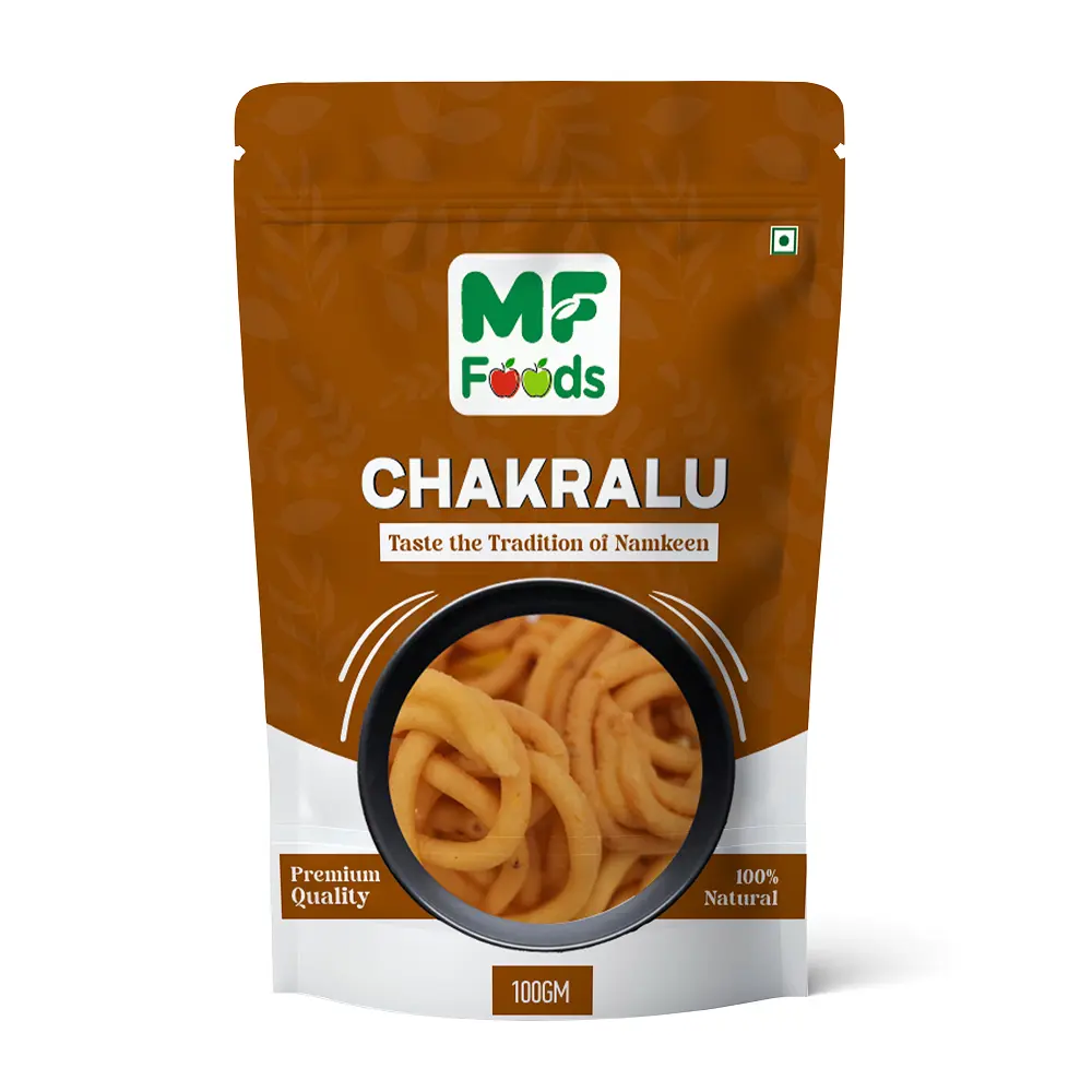 MF Foods Chakralu is a traditional South Indian savory snack made from rice flour and aromatic spices, shaped into spirals and deep-fried to perfection. Each bite offers a delightful crunch and a burst of authentic flavor.